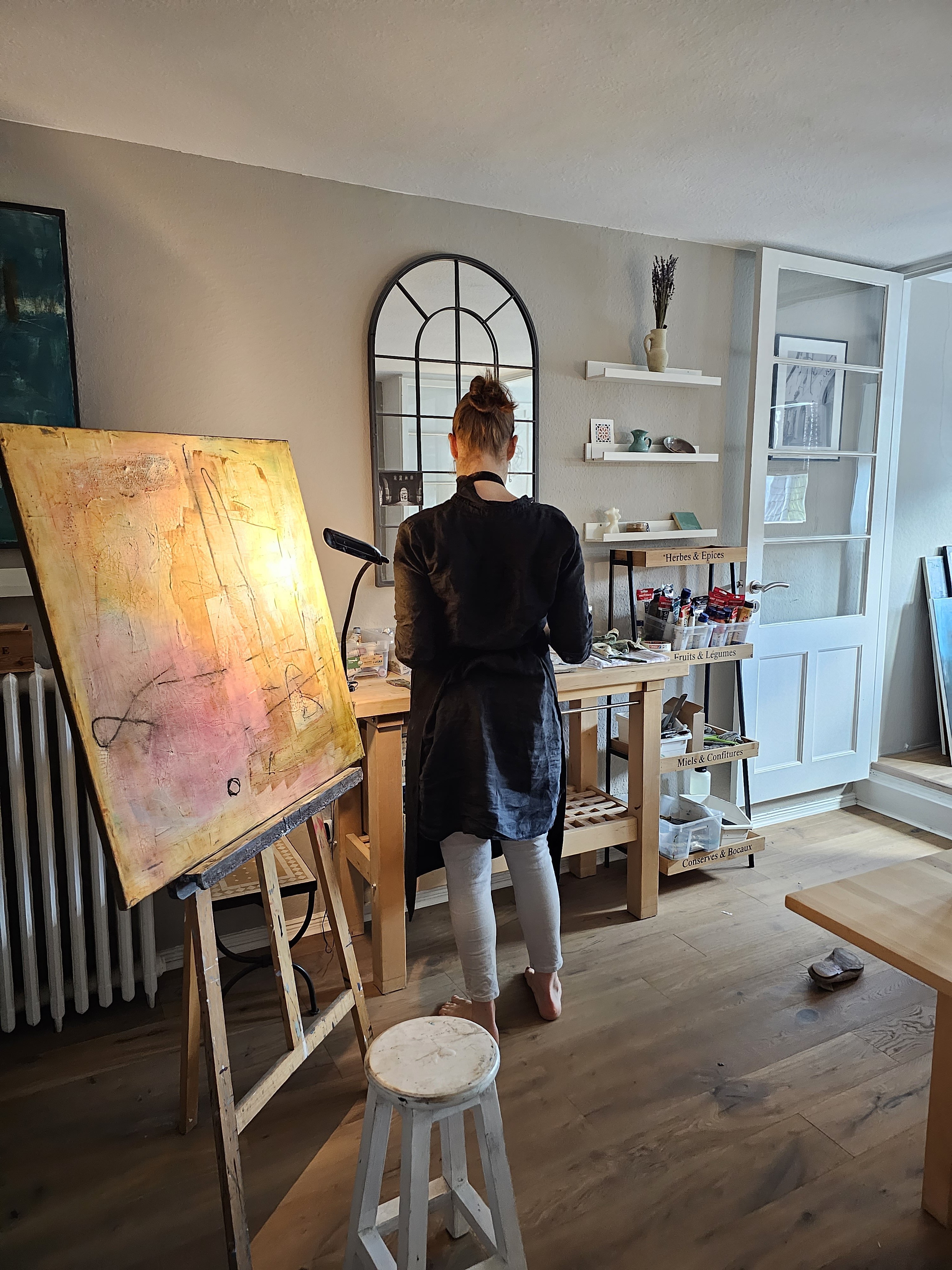 Zeitlose mediterrane Schönheit, Sprache und Philosophie inspirieren mich und sind oft eng miteinander verwoben. Meine Bilder sind stark beeinflusst von den globalen Eindrücken, die ich im Laufe der Jahre als Dolmetscherin auf Reisen gesammelt habe; die Texturen weiß getünchter Häuser in spanischen Bergdörfern, griechisch-blaue Türen und Fenster auf Kreta oder wunderschöne Terrakotta-Fassaden in Italien. Wer braucht Museen, wenn ein Spaziergang durch die Straßen von Rom oder Granada so viel schöner und alltäglich ist? Geschichte, Philosophie und Ästhetik sollen zum Alltag gehören und keinen Museumsbesuch erfordern. Schließlich ist ein Cappuccino in einem Café in einer schönen Straße in Rom oder ein Glas Vino und ein paar Tapas in einer kleinen Bodega in Spanien ein künstlerisches Erlebnis für sich. Nenn mich einen Minimalisten, wenn du magst :-)