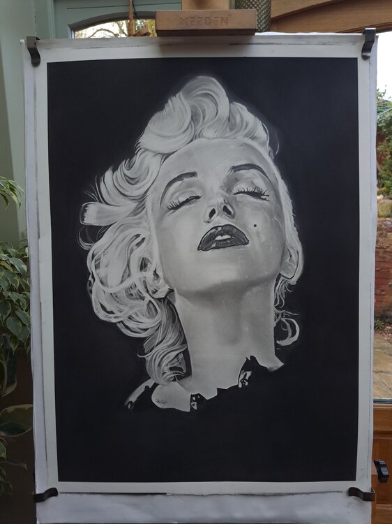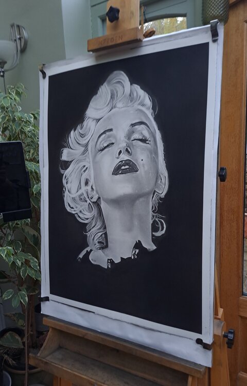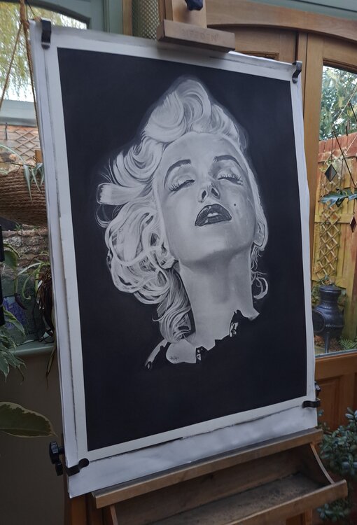 Was für ein Vergnügen, Marilyn zu zeichnen. Das dritte Porträt, das ich gemacht habe, und bei weitem das beste. Dieses Bild stammt aus ihrer späteren Karriere, auf dem Höhepunkt ihrer Karriere und als größte Ikone in Film und Musik. Wunderschöne Marilyn.
