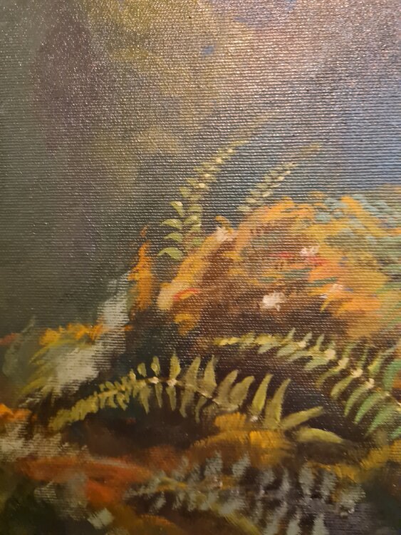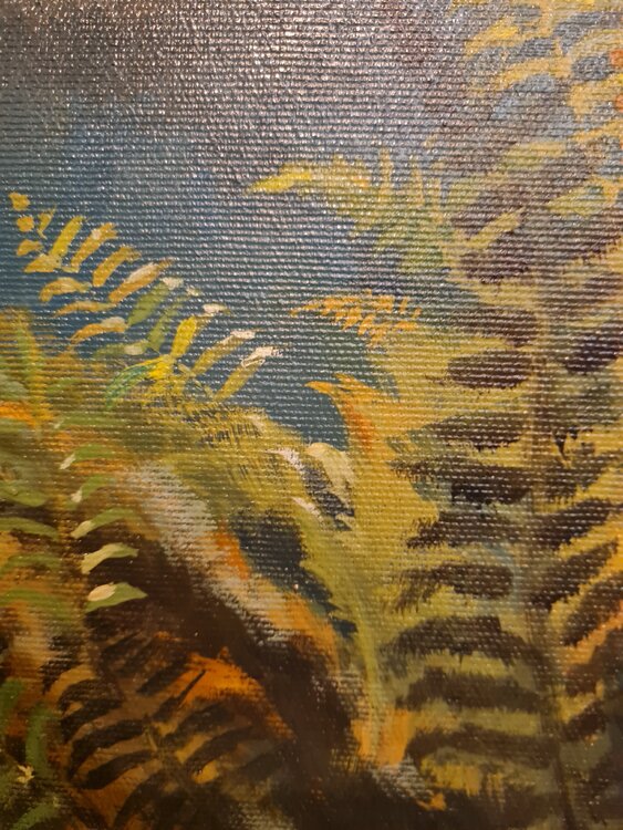 Die Dunkelheit dieser Szene hat mich besonders gereizt. Das einzige Konkrete in diesen Bild sind ein paar Blätter der Farne.