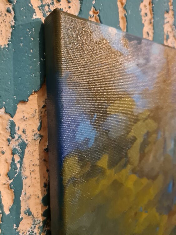 Die Ränder sind bemalt und das Bild kann ohne Rahmen gehängt werden.