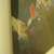 Gemälde mit Hühnern und einen Hahn in der Mitte. Das Gemälde ist bewusst sehr dunkel und kontrastreich gestaltet.