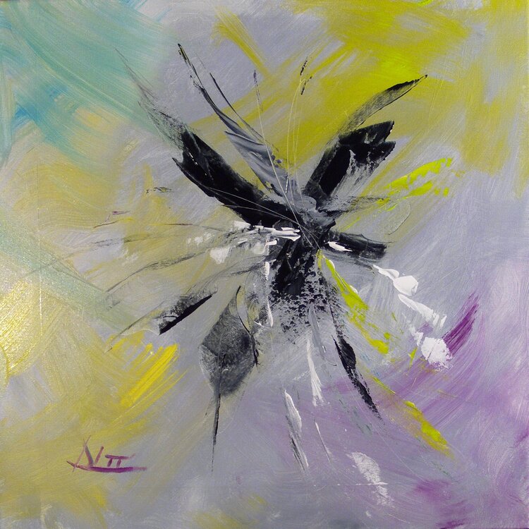 Die Ausarbeitung des Acrylbildes erfolgte mit Pinsel und Spachtel.