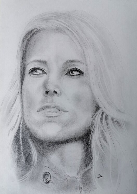 Bleistift-Portrait Moderatorin und Model Sylvie Meis. Das Blatt wurde zum Schutz foliert.