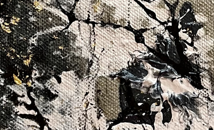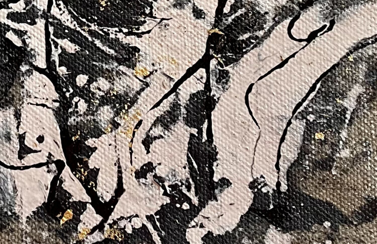 Strukturpaste auf Rohleinen mit kleinen Blattgold-Akzenten.