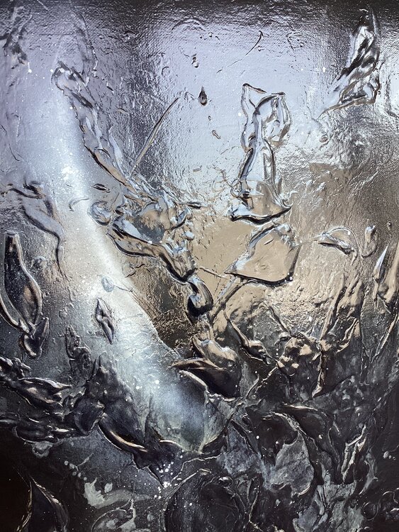 Dunkel, geheimnisvoll puristisch und gänzend mit organischen Strukturen - präsentiert sich dieses Werk.