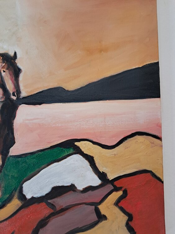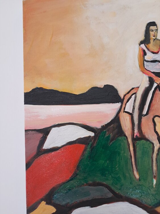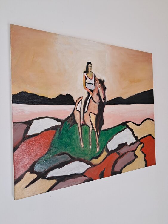 Auf dieser Leinwand habe ich den Rhythmus einer Verschmelzung zwischen menschlicher Seele und Natur eingeprägt. Das Öl verstärkt die Lebendigkeit der Farben, die durch die Pinselstriche gegebene Struktur unterstreicht die Ausdruckskraft. Meine Malerei ist eine Hymne an die Freiheit, an die Gemeinschaft mit der Welt, mit kräftigen Linien, die wie ein wilder Puls die Leinwand durchziehen. Wenn Sie dieses Werk mit nach Hause nehmen, holen Sie sich einen1