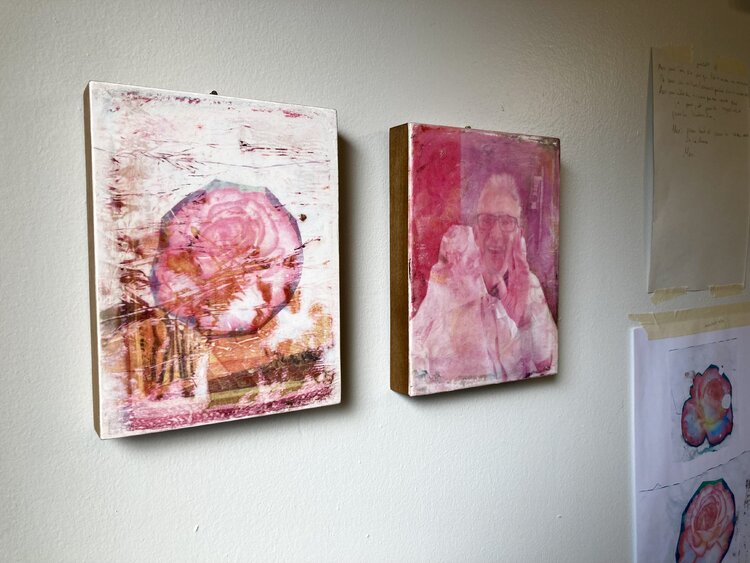 Dieser Mix aus verschiedenen Techniken: Collage, Acrylfarbe, Buntstifte auf Lindenholz ist nach dem Vorbild antiker und moderner Ikonen gestaltet.