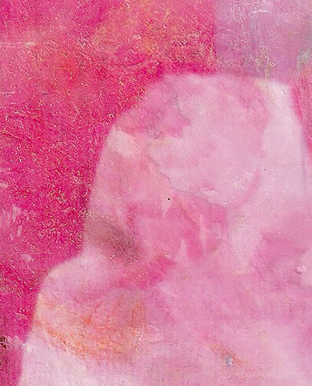 Es erinnert auch an Andy Warhols „Big Electric Flesh“ und Yue Minjuns zahnige, lachende rosa Gesichter.