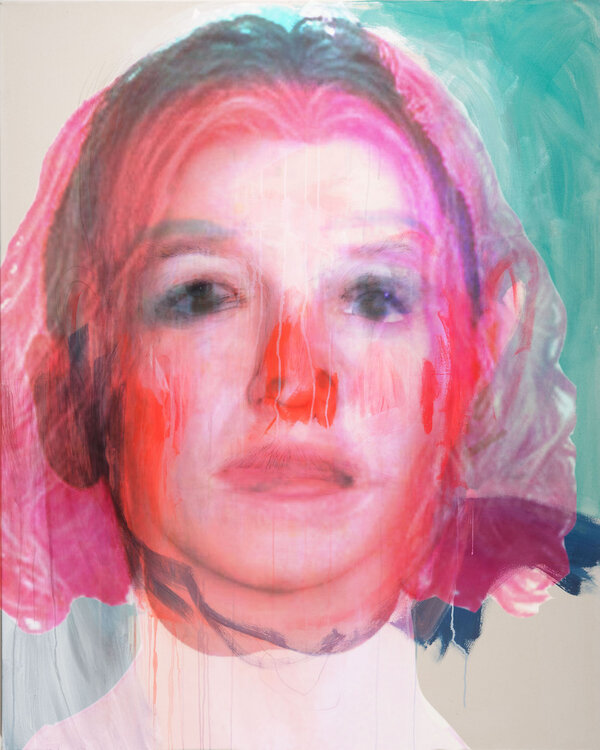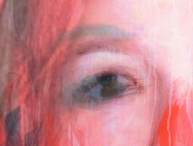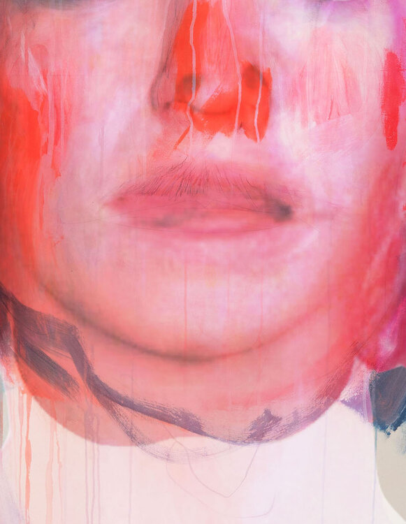 Wie im Titel angedeutet, ist dieser Gallery-Bond-Druck die Matrix vieler Werke, darunter „Truism II There’s no light in your eyes and your brain is too slow“, „Truisms“, „Panic“, „Panic 1 a“… It -even ist das Ergebnis einer Mischung aus einem von Evas Gemälden aus dem Jahr 2010 „Die Müdigkeit, man selbst zu sein 3“, einer alten Frauenskizze und einem Bild eines Hollywoodstars. Unter der Haut andere Haut. Dadurch entsteht eine bonbonrosa, verblasste1
