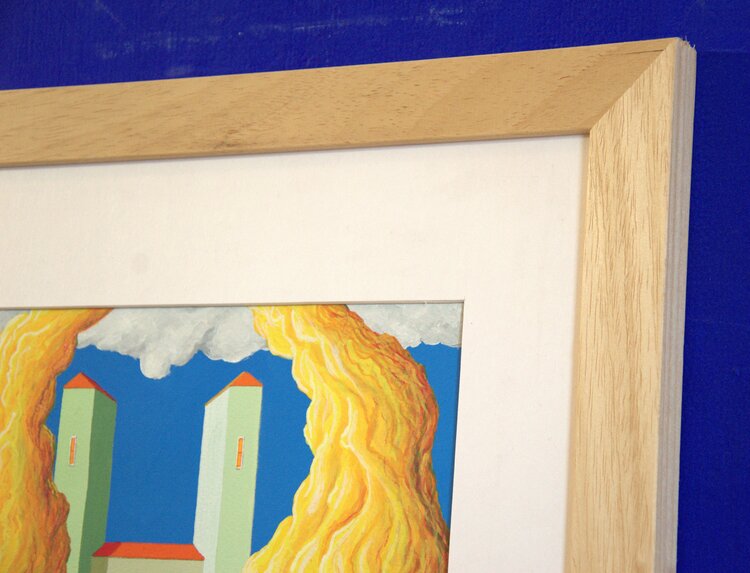 Ich habe diese Tempera auf einen sehr leichten Naturholzrahmen von ca. 3 cm aufgezogen. und durch eine Plexiglasplatte geschützt.