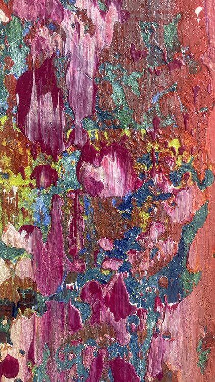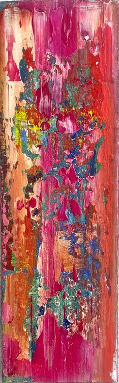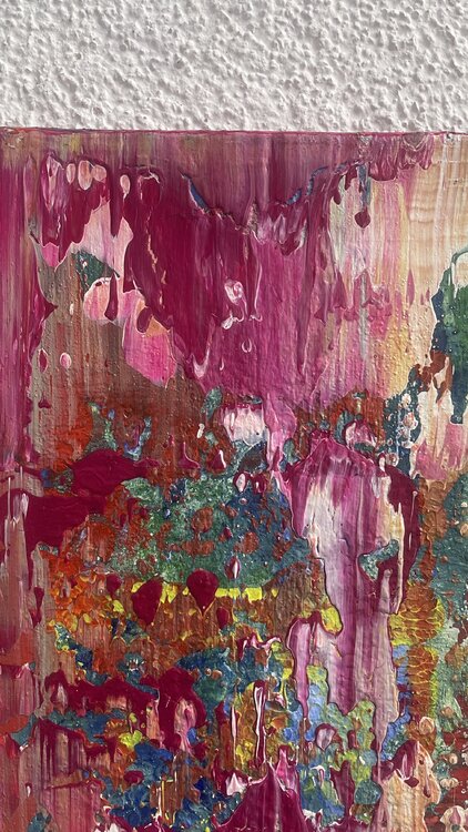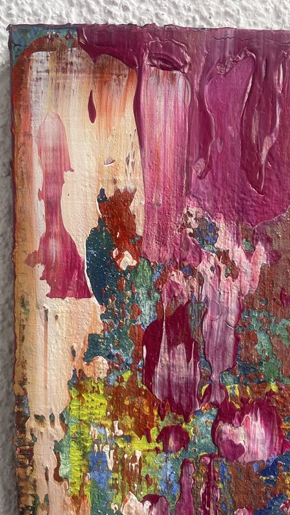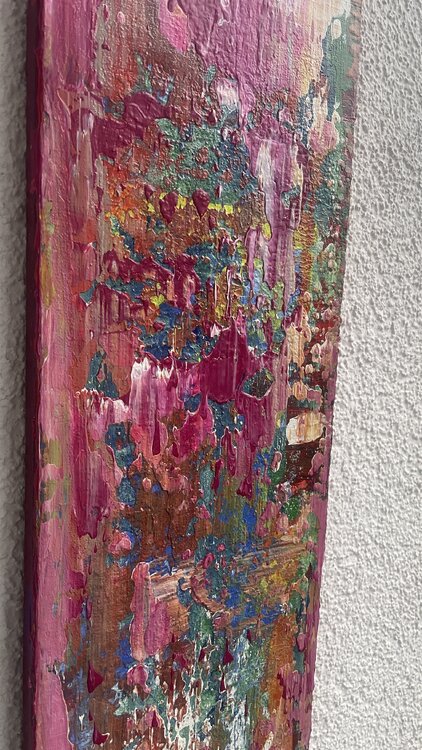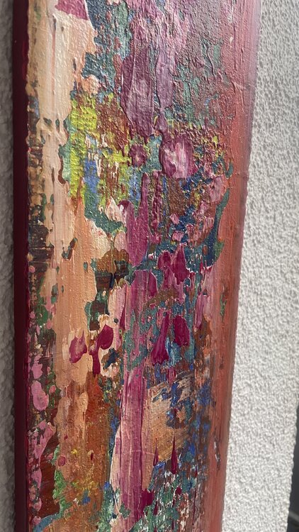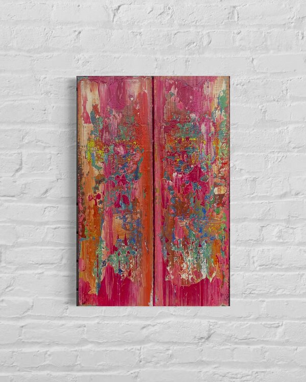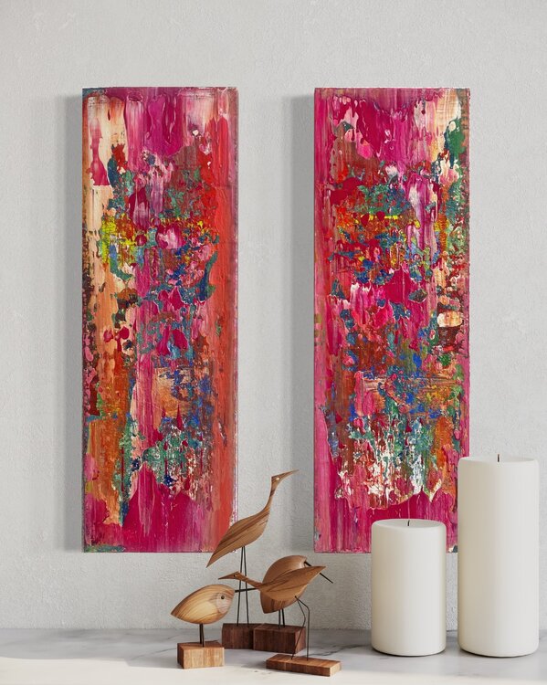 Modernes abstraktes zweiteiliges Acrylgemälde in der Rakeltechnik. Pink Lady, ein sehr weibliches, warmes und harmonisches Gemälde! Es erhält durch den Auftrag unterschiedlicher hochwertiger Künstlerfarben in mehreren Schichten und mit unterschiedlichsten Malmitteln seine ausgesprochen haptische Struktur und seine bildliche Tiefe. Die Farben des Bildes sind regelrecht greifbar!