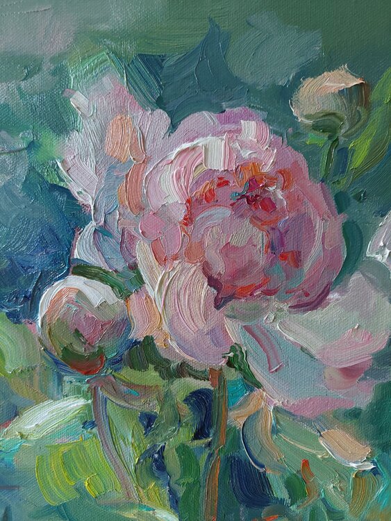 Hellrosa Blumenstrauß. Malerisch und impressionistisch.