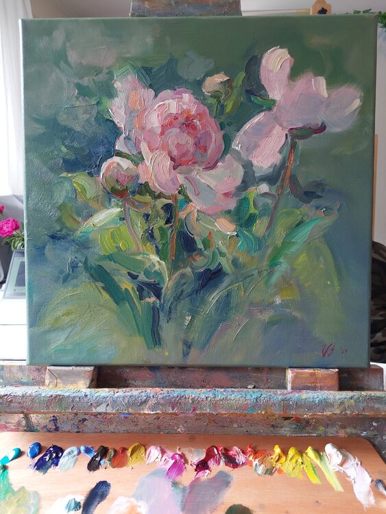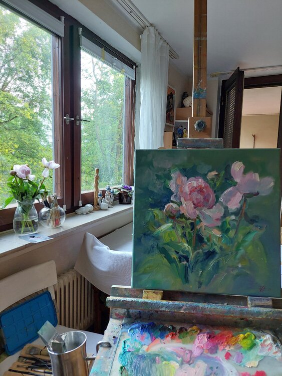 Feinheit der Farbübergänge und -beziehungen. Das Werk ist in Öltechnik ala prima, in einer Sitzung gemalt.