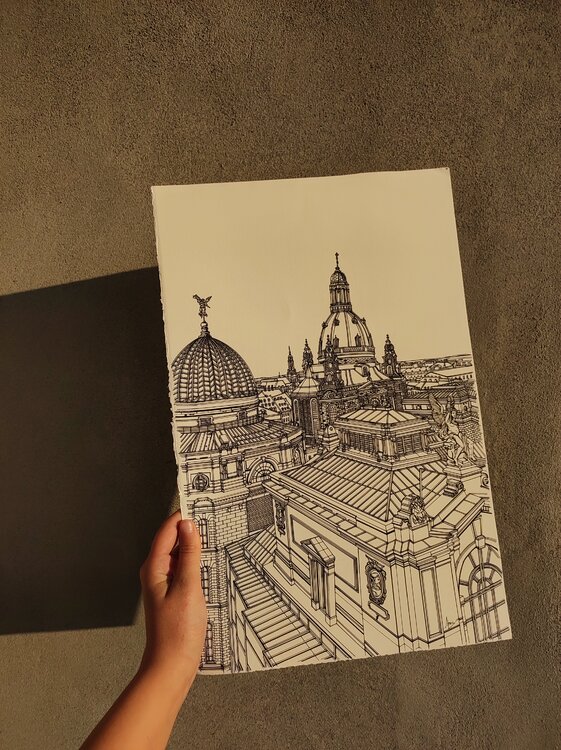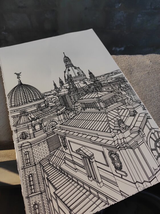 Schauen Sie sich meine neueste architektonische Tintenskizze von Dresden an! Ich habe mich für einen Schwarz-Weiß-Stil entschieden, um den historischen Charme der Stadt wirklich einzufangen, und ich habe sogar die berühmte Kirche aufgenommen, die zu einer Ikone der Stadt geworden ist. Ich bin wirklich stolz darauf, wie dieses Ergebnis geworden ist, und ich hoffe, es gefällt euch allen auch!