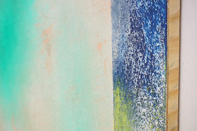 • Verarbeitung : Werk auf Holz. Kann direkt aufgehängt werden. Nicht gerahmt