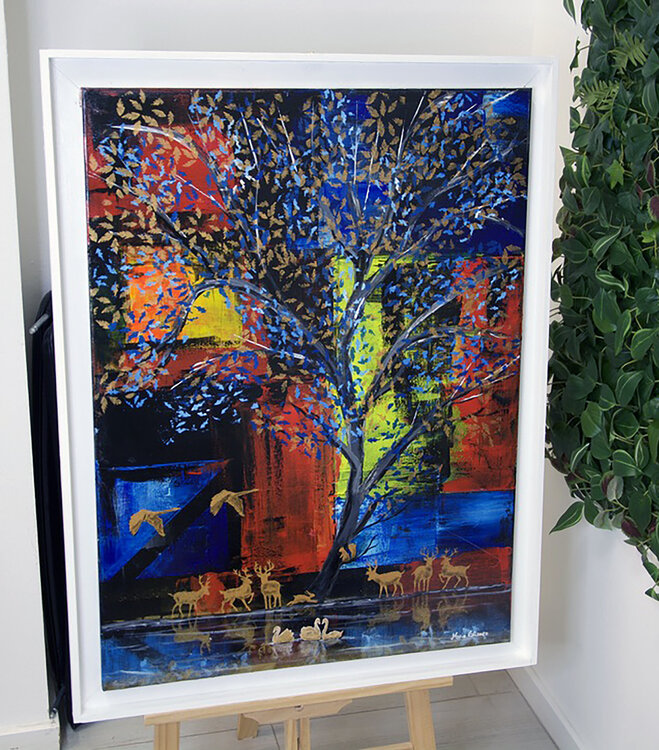 In einem verzauberten Wald stand ein leuchtend bunter Baum, bewacht von Hirschen und goldenen Schwänen und umgeben von kleinen, freundlichen Tieren. Am Ufer des Sees lag das Geheimnis seiner Schönheit: Seine Wurzeln waren in reines und magisches Wasser getaucht ... oder vielleicht gab es einfach keine umweltschädlichen1