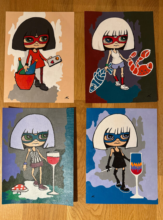 Geschichte einer Frau in verschiedenen alltags situationen. Acryl on papier