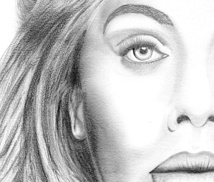 Porträt von Adele mit Bleistiften auf 300-Gramm-Papier.