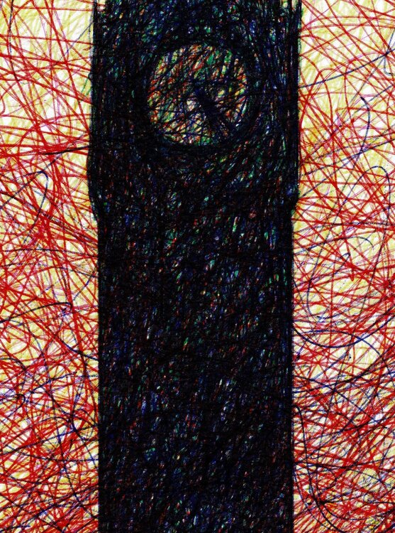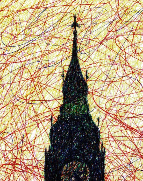 Big Ben mit farbigen Gelstiften auf 300-g-Papier.