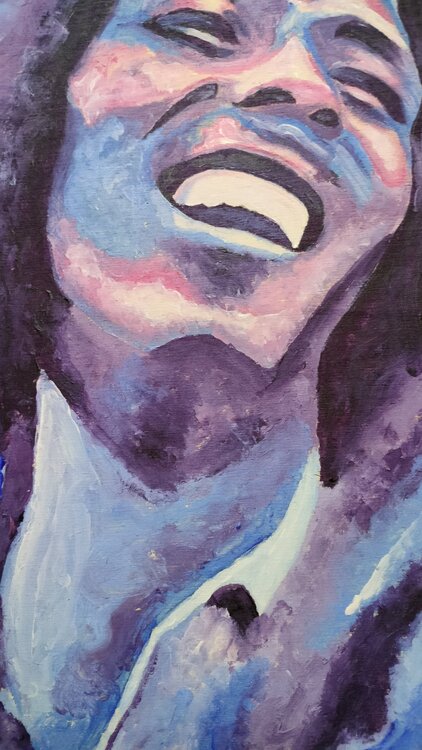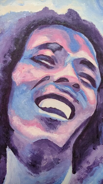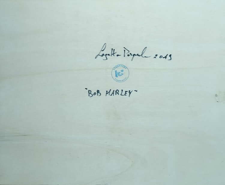 Porträt des großen Bob Marley, Acryl auf Sperrholz.