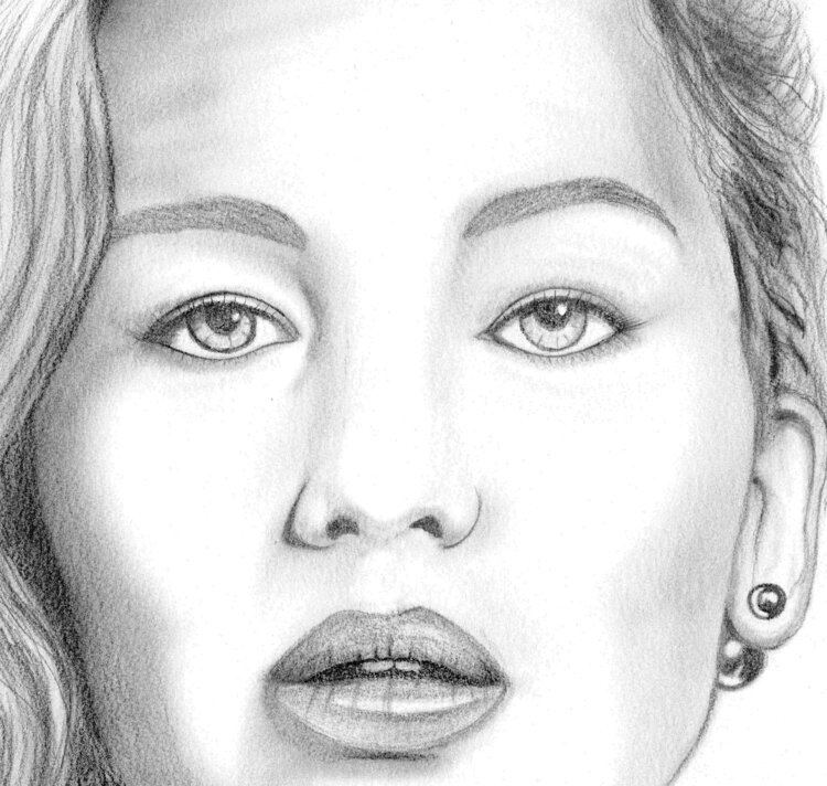 Porträt von Jennifer Lawrence mit Bleistiften auf 300-Gramm-Papier. Versand der Zeichnung mit Echtheitszertifikat und Künstlerstempel.