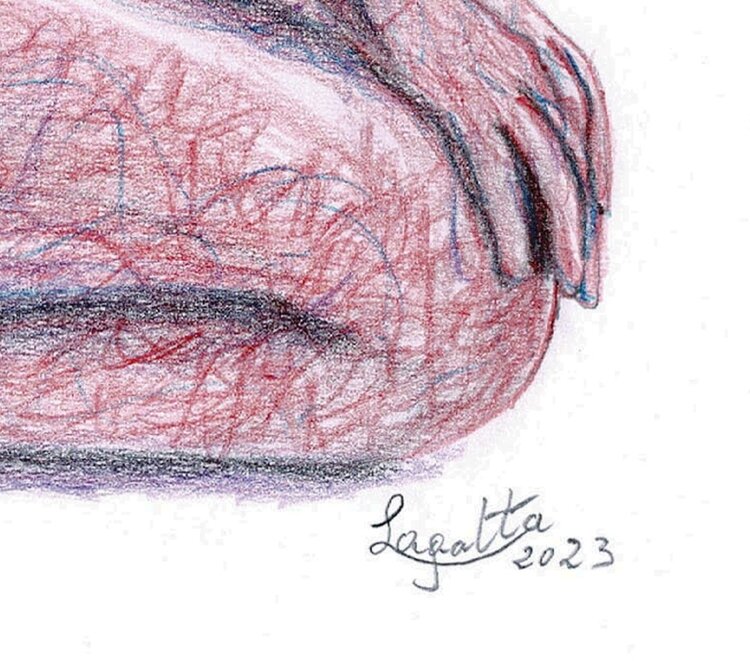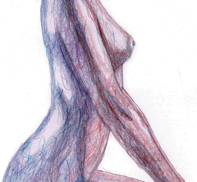 Akt einer Frau mit Buntstiften auf 240-Gramm-Papier. Versand der Zeichnung mit Echtheitszertifikat und Künstlerstempel.