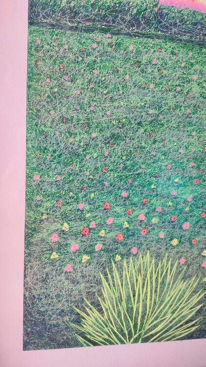 Zeichnung mit farbigen Gelstiften auf 300-g-Papier. Versand der Zeichnung mit Echtheitszertifikat und Künstlerstempel.