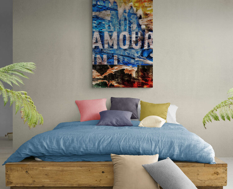 Für dieses Poster war es notwendig, den Rahmen so nah wie möglich am Wort LIEBE zu platzieren, um ihm all diese Stärke zu verleihen. Glücklicherweise bringt die Farbe Blau Hoffnung und Leben.