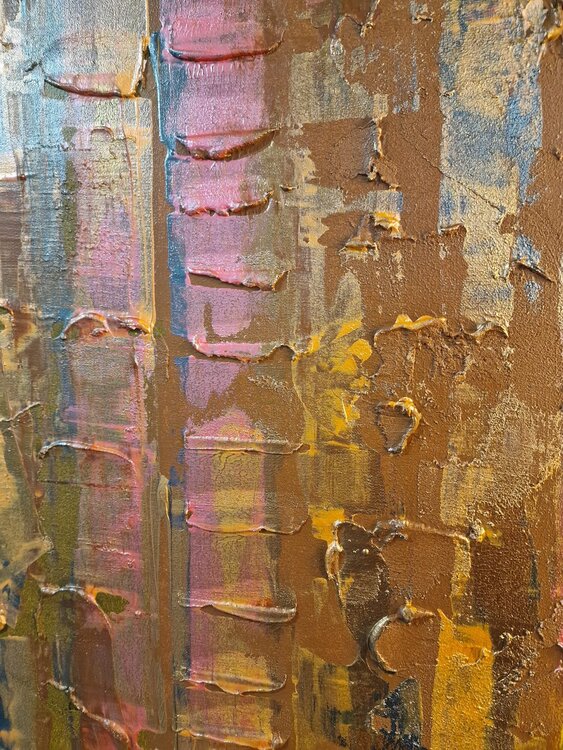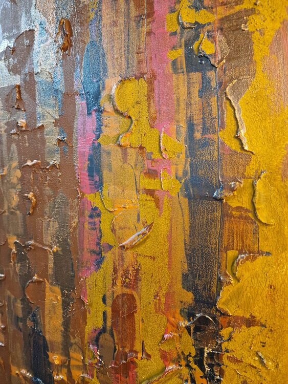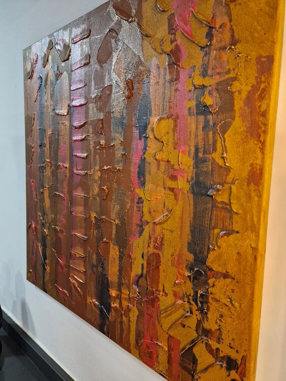 « Ich lege die Leinwand auf den Tisch, höre auf zu denken und lasse meinen Gedanken freien Lauf, meine Inspiration auftauchen und von dort entsteht die Kunst ... von selbst. »