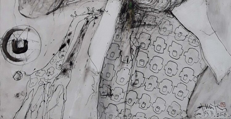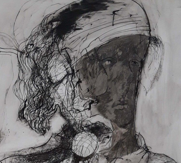 Tusche, Kreide auf Karton, 100x70cm, 2019