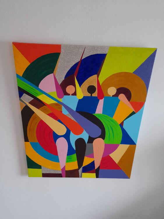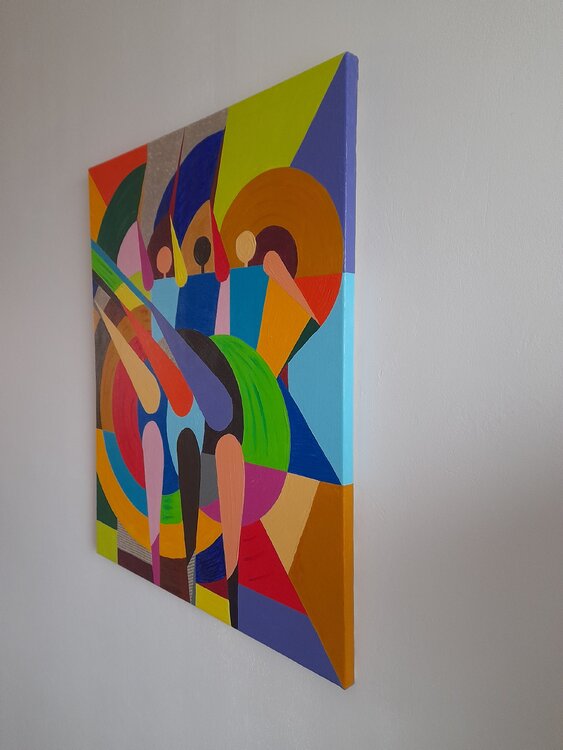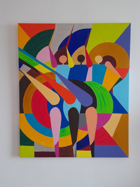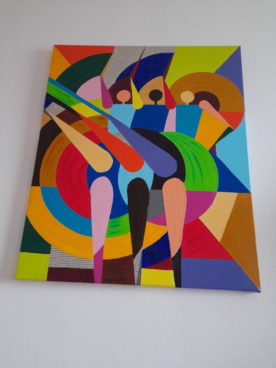 Diese Arbeit ist 2019 entstanden. Zu Beginn des Projekts musste sie ausschließlich über Tanz sprechen. Doch Stéphane Cantin erkennt beim Malen sehr schnell, dass es als Ausgangspunkt für eine größere Serie dienen könnte, die sich mit den Sportarten während der Olympischen Spiele 2024 befasst.In der Tat lässt ihn die Haltung der Tänzer schnell an die paradierenden Athleten denken die Spielezeremonie oder diejenigen, die sich darauf vorbereiten, die1