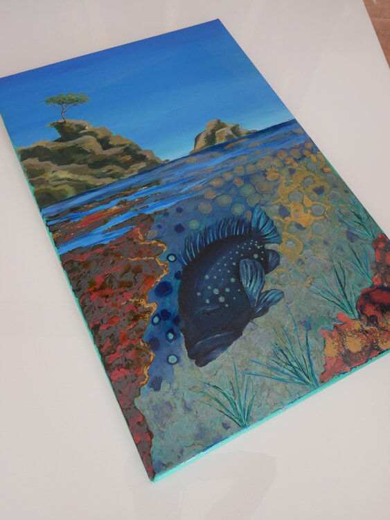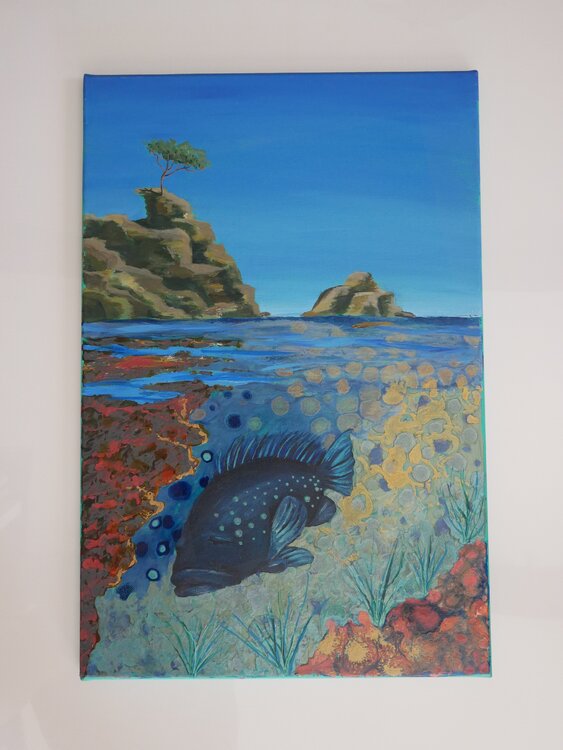 Der Zackenbarsch verliert sich in für ihn zu warmen Gewässern mit leuchtenden Farben und verblasst in diesem Regenbogenmeer. Wir betrachten es mit unseren Augen im Wasser und unseren Füßen auf dem Boden. Lassen Sie uns von den warmen Strömungen des Mittelmeers einlullen.