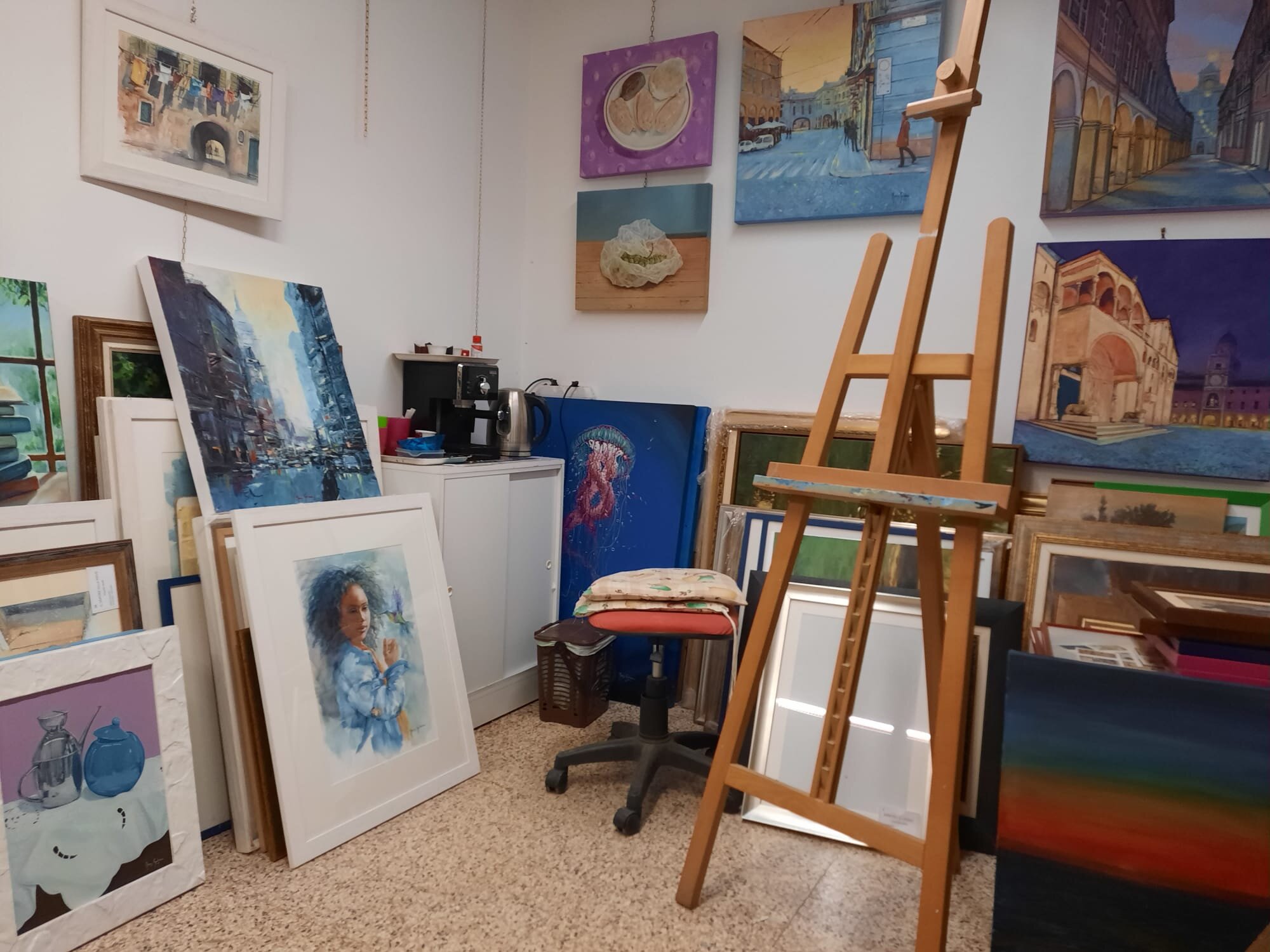 I like painting in all its forms. Although I enjoy every technique, watercolor is the supreme expression of my soul. I was born as a fashion stylist, I later studied various techniques such as trompe l'oeil on the wall, painting on glass and fabric, oil and acrylic. I have been painting for over 50 years, I teach painting in my studio and in cultural associations. I collaborate on the writing of books on cities with illustrated tables and covers. I wrote and illustrated The Book of Michael. I have a permanent exhibition at Banca Fideuram