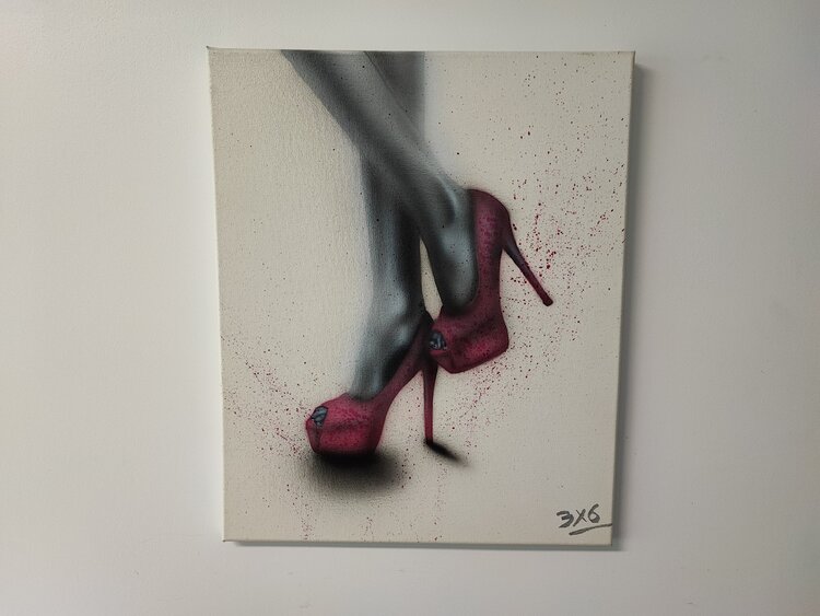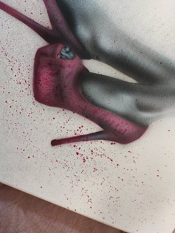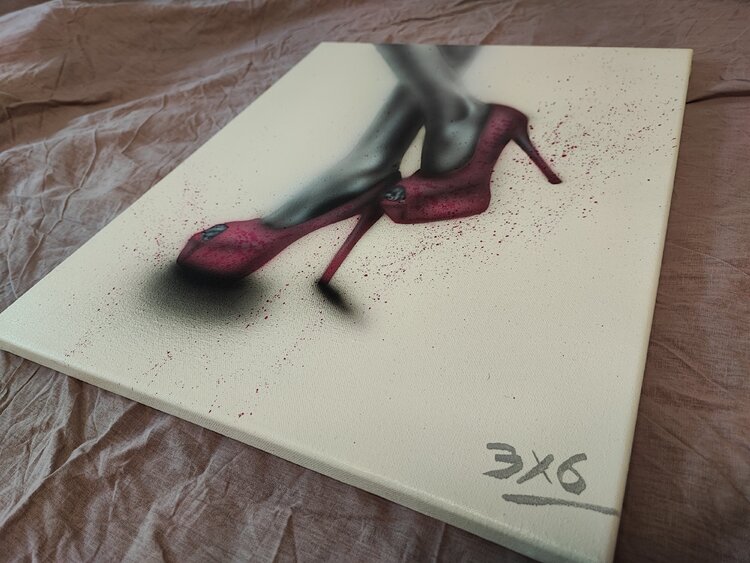 Painting made with airbrush and aerosol with glossy varnish finish.