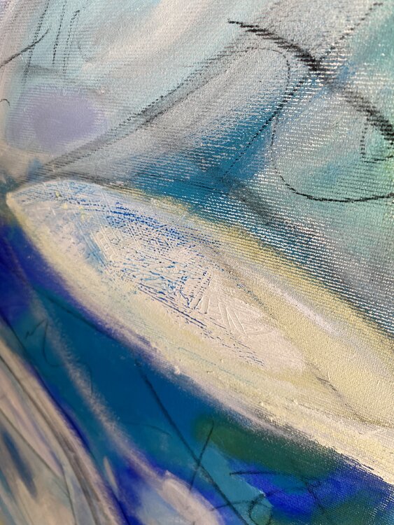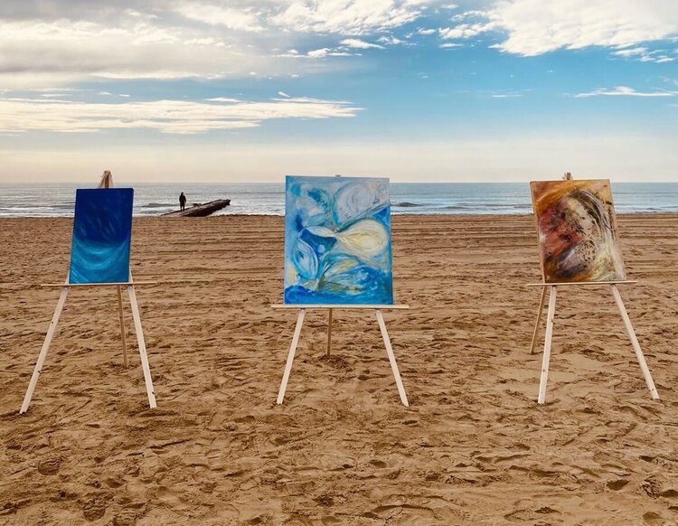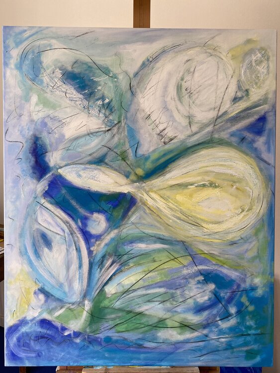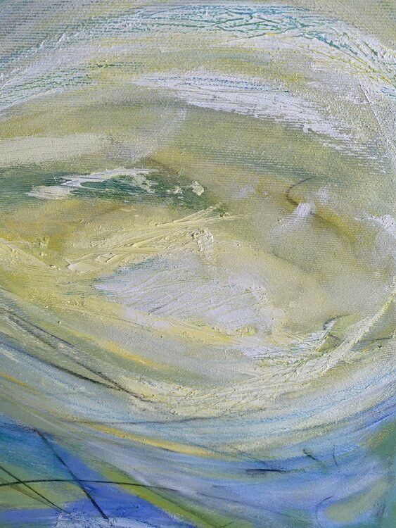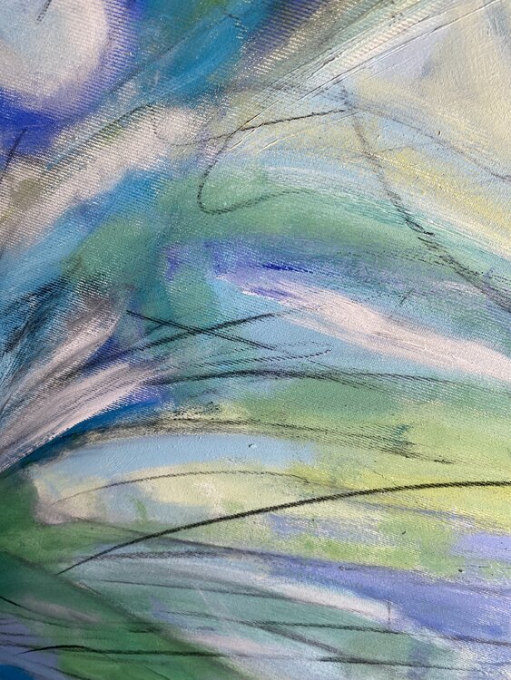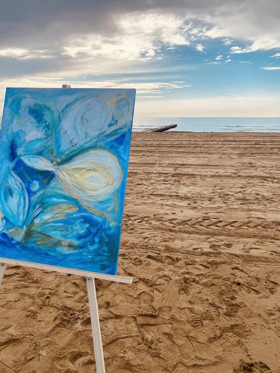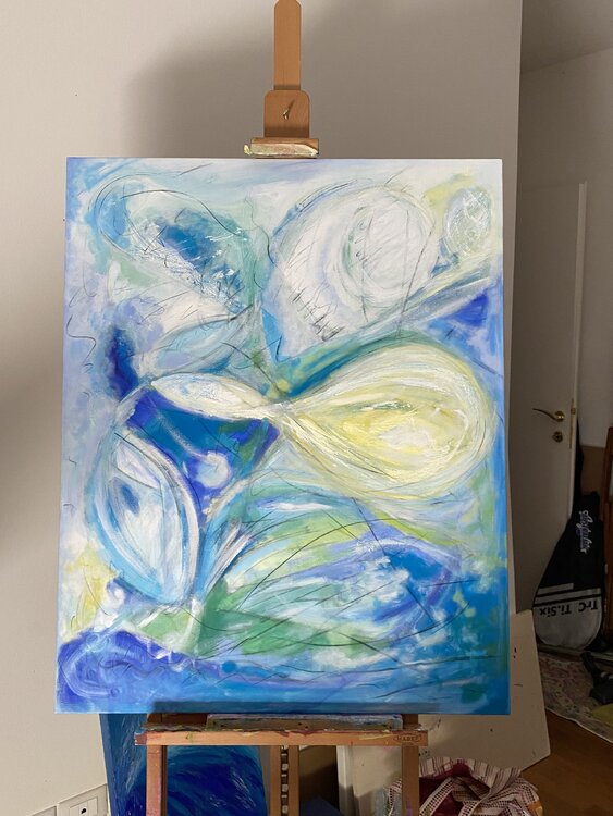 Once returned home she wanted to translate all this beautiful scenery in an artwork titled “Cannigione 22 that aims to express all the harmony and peace that everyone can live during a visit to Cannigione and in1