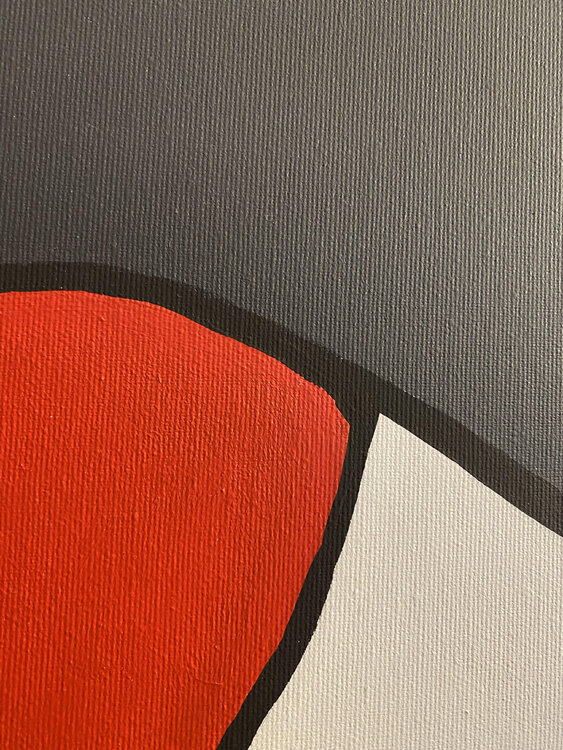 Very simple concept that is underline by th very simple line of the drawing. Few strong colors are the other peculiarity of this artwork: Dark Grey , white and clear red. "That's all folks "