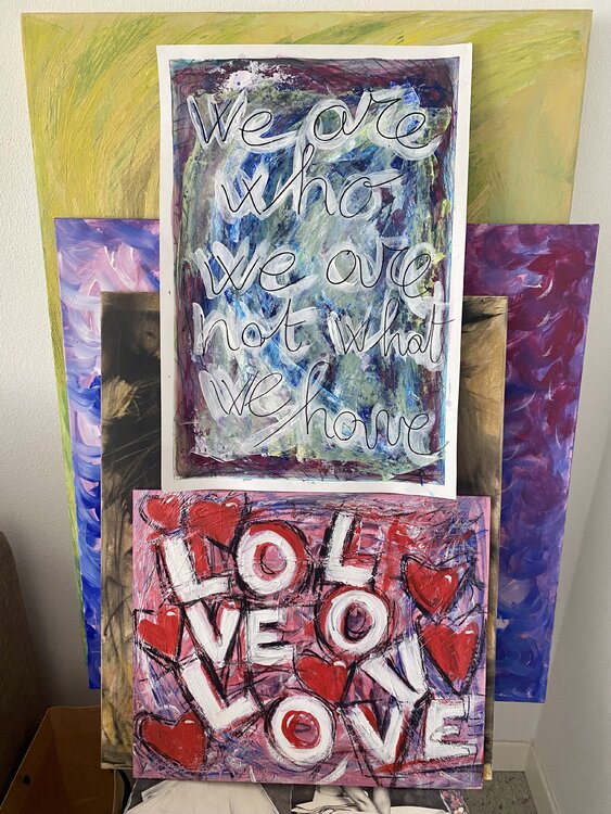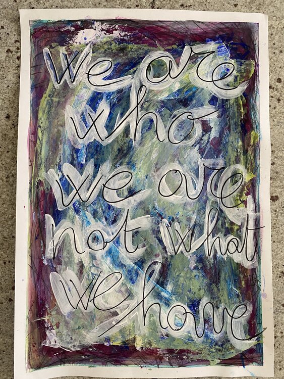 The artwork is an abstract style but with a clear sentence: “We are Who We are, not what We have” .