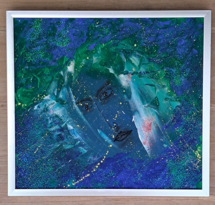 Acrylic, Charcoal on Canvas, 47x52cm, 2023