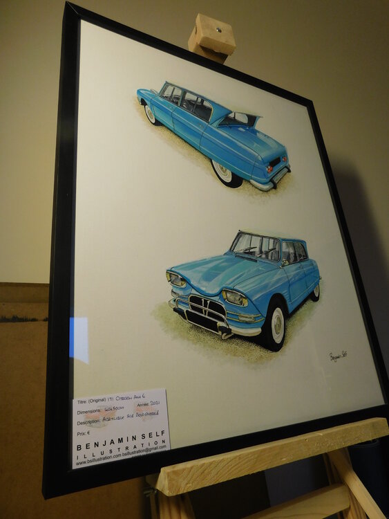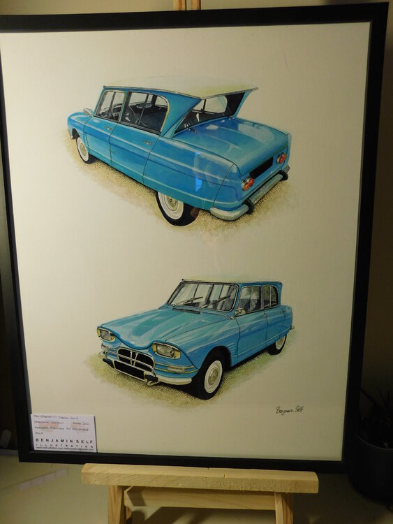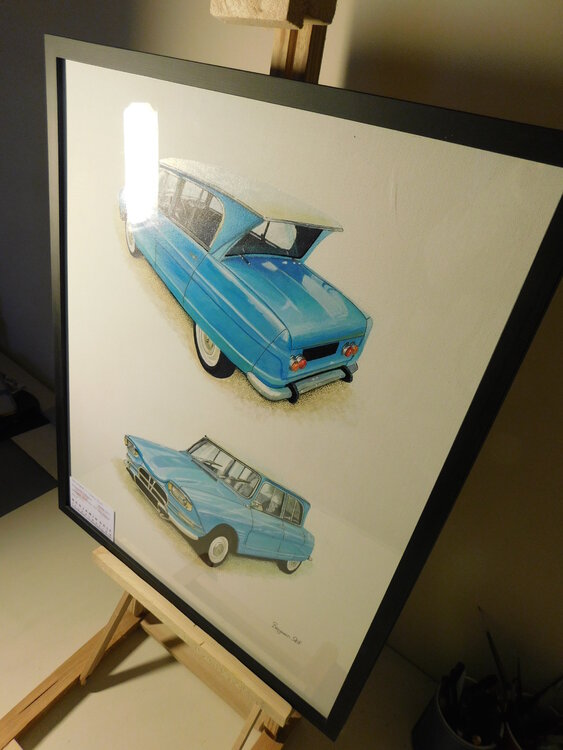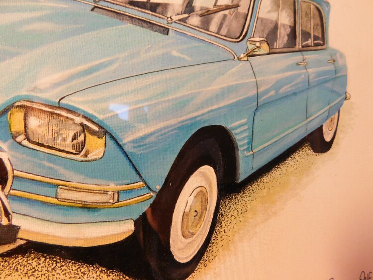 Some old cars are so dynamic in design that they warrant a dual aspect painting, the Citroen Ami 6 is one of those cars, my painting is presented here in acrylic paint, onto MDF-backed canvas 40x50cm. The Cadillac was photographed in LeMans and the Ford in Juneau (AK).