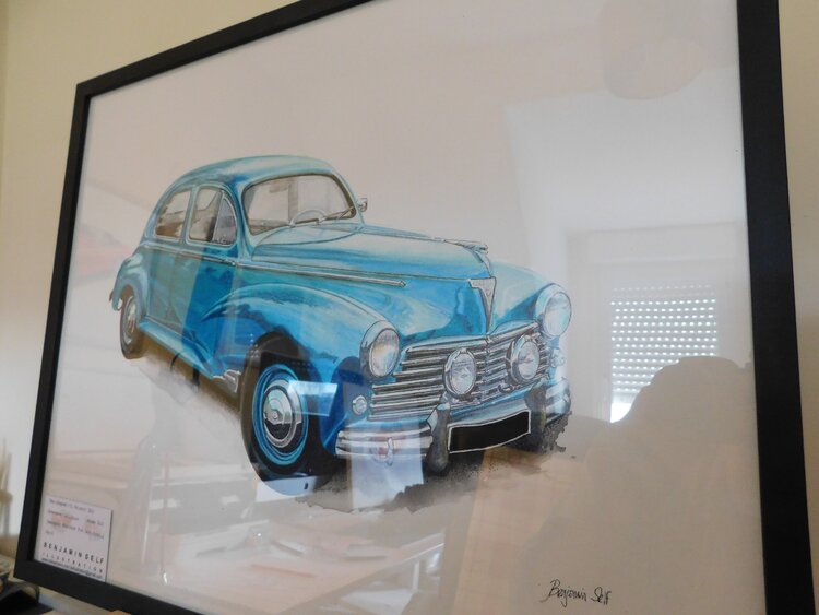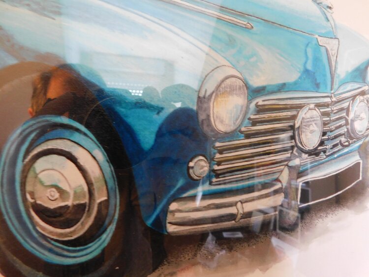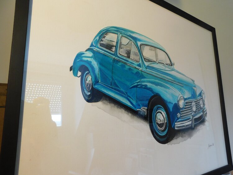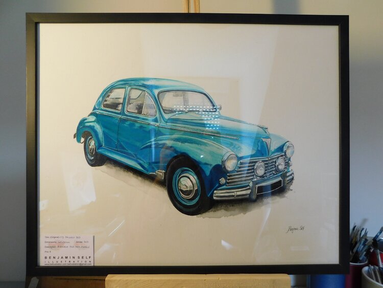 This brightly-coloured classic Peugeot 203 caught my eye due to it's unusual colour, in acrylic ink, onto MDF-backed canvas 40x50cm.