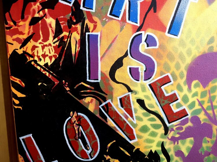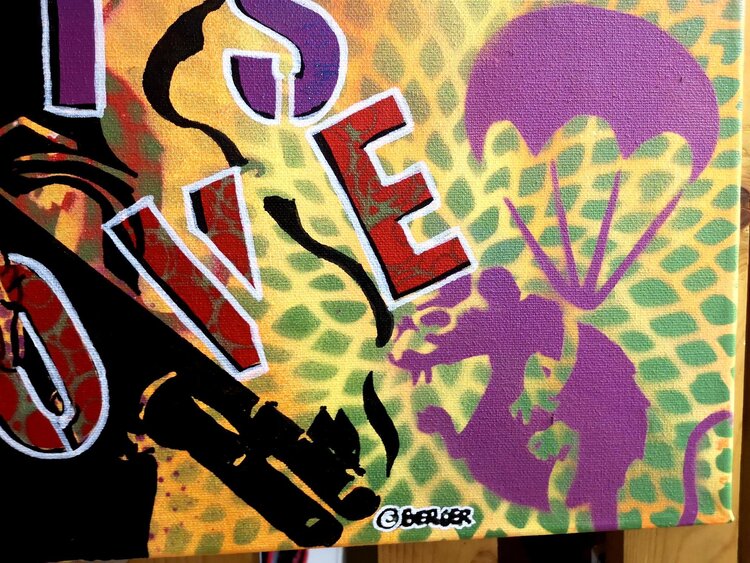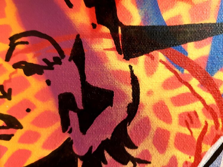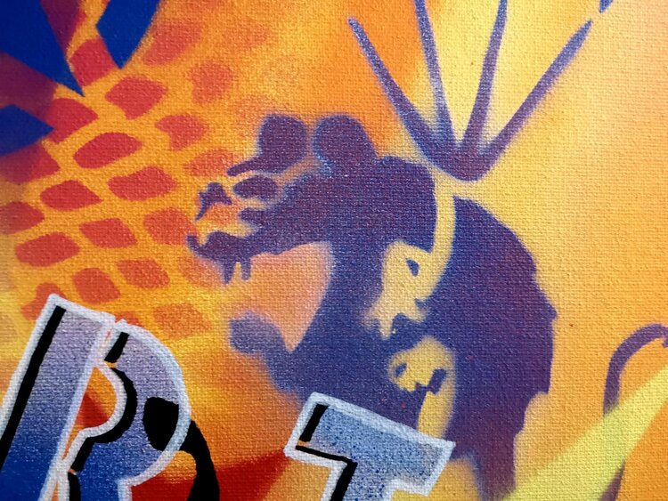 One of my first works with the spray can, there are Banksy elements as well as Marilyn Monroe as the Statue of Liberty. It was fun cutting the stencils, a picture I dedicated to my girlfriend.