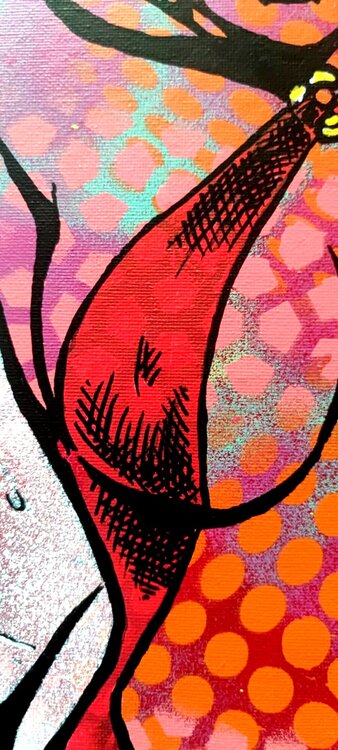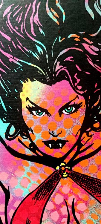The well-known gothic figure Vampirella here as a trendy self-interpretation in large format. Beautify your home with a unique work of art and be the envy of your friends. ;-) Also an ideal gift for someone you care about. If you have any questions, don't hesitate to contact me. Unrealistic price proposals will be ignored.