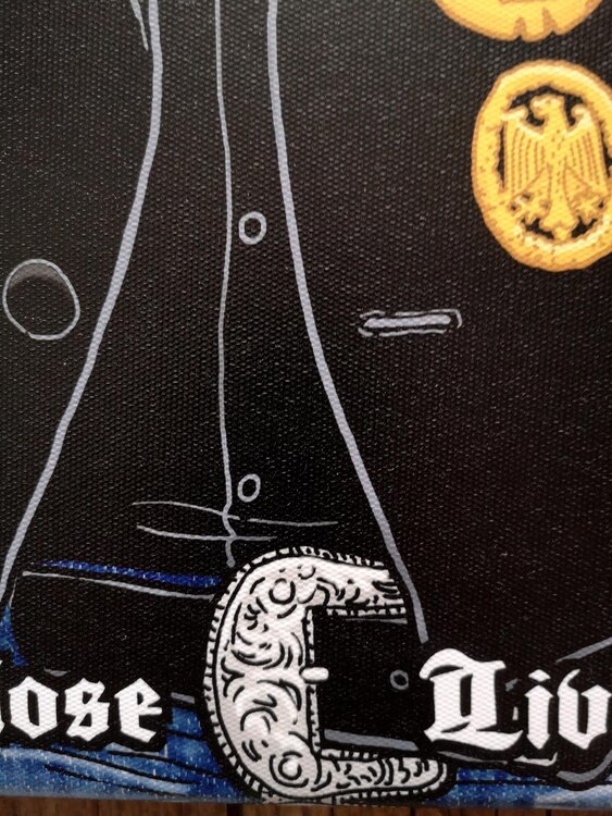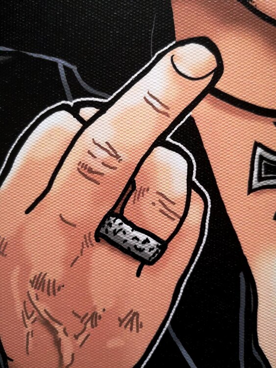 A tribute to the god of rock 'n' roll, the one and only Lemmy Kilmister. The bassist and founder of the group "Motörhead", who sadly passed away in 2015, was not a pretty boy and not a conformist chair fart, but he lived rock'n'roll like no other. Rest in peace, brother in spirit and thank you for the music you left us. The image is a print, I made it digitally, but it's still a one-off.