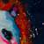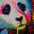 The black background highlights the white of the face of this touching and friendly animal, represented in a succinct way without accentuating the details of the hair, to draw attention directly to its expressive gaze.