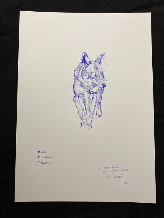 The Abyssinian wolf is the third in this section on wolves. This very rare canine is popular with the artist for its fine features and elongated muzzle. His graceful gait gives him an air of constant alert. Clément Corman's features draw a very mysterious silhouette.