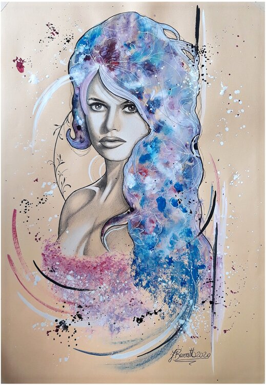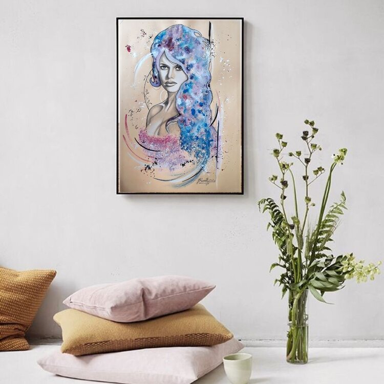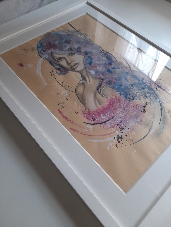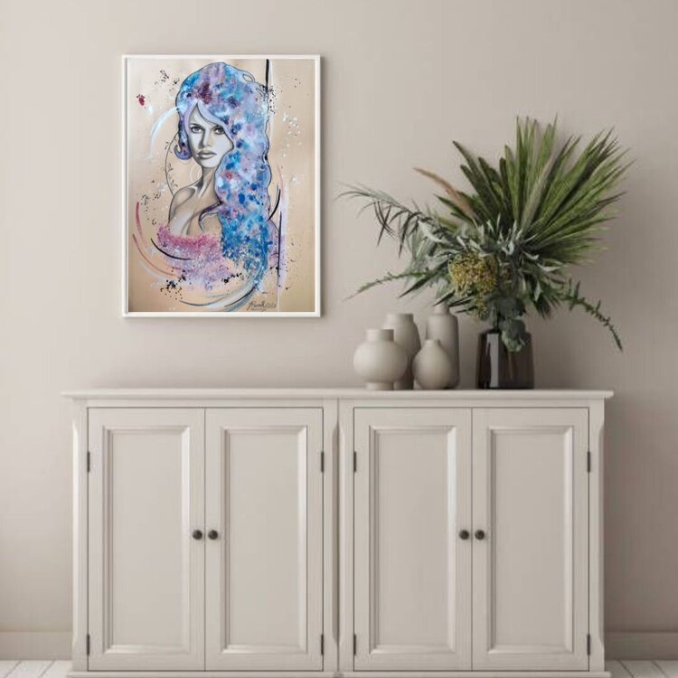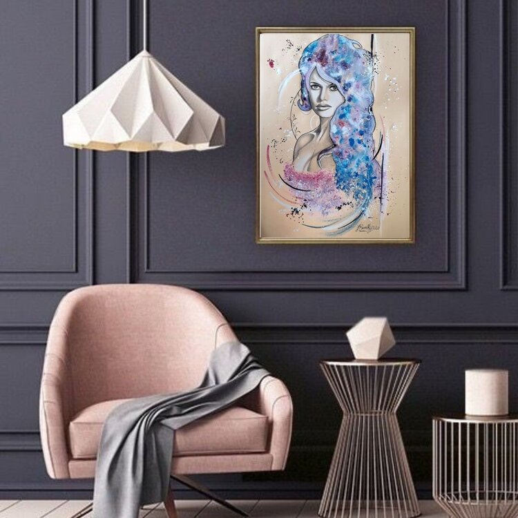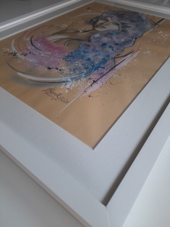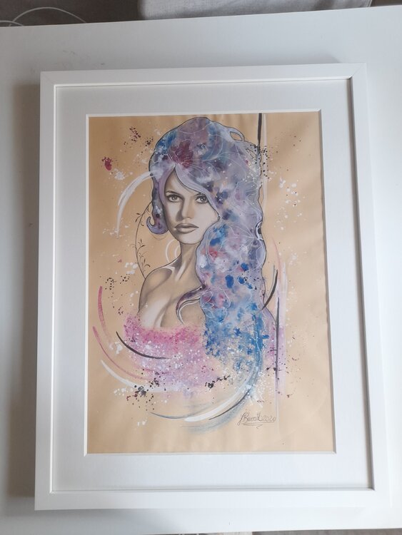 THE WORK IS FRAMED WITH AN ARTISANAL FRAME AND GLASS. THE DIMENSIONS ARE WITH THE FRAME