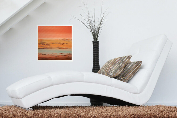 The edges of the painting are painted and it is ready to hang even without a frame.