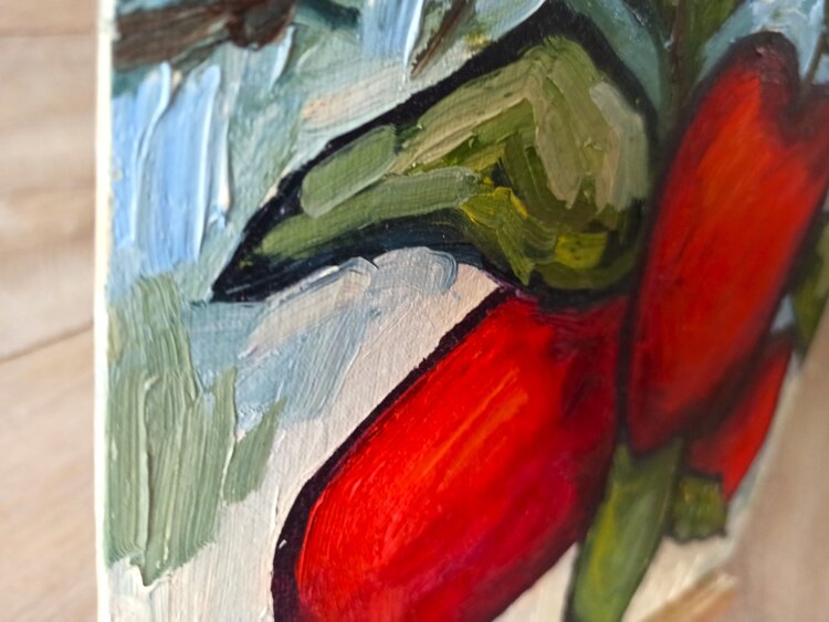 Oil painting on canvas panel 25 cm by 25 cm, original artwork by Inna Bebrisa. This is 100% original artwork, it's not a print!