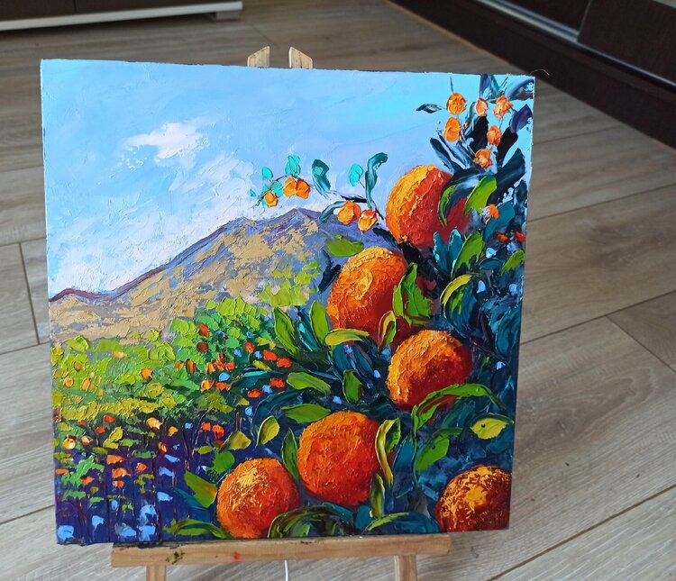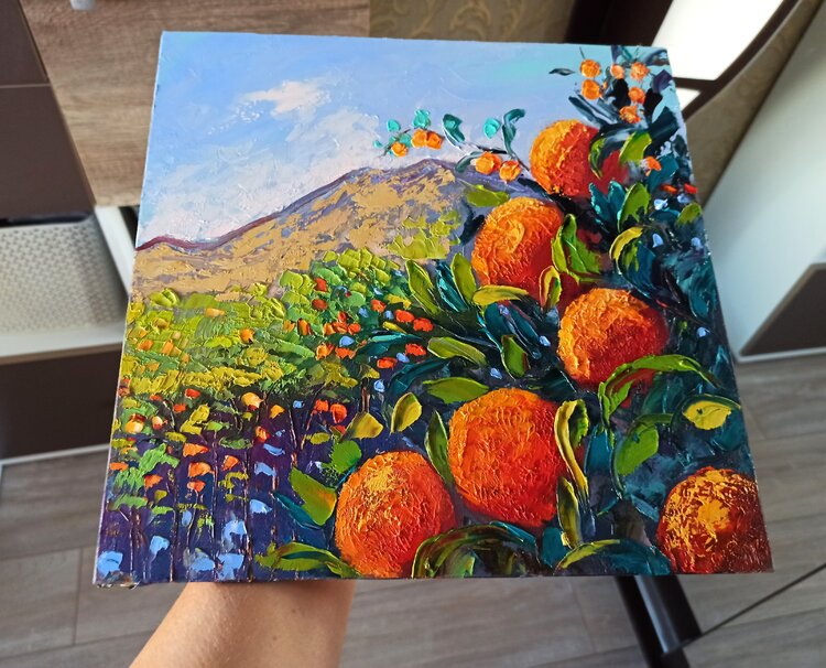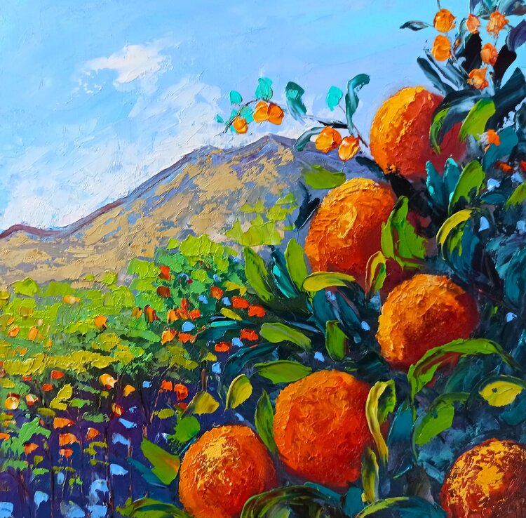 Tangerines on trees painting