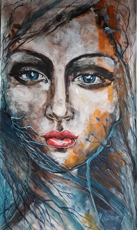 The picture was painted with acrylic paint and partly with oil paints. The canvas is not stretched (size 100 x 60 cm).